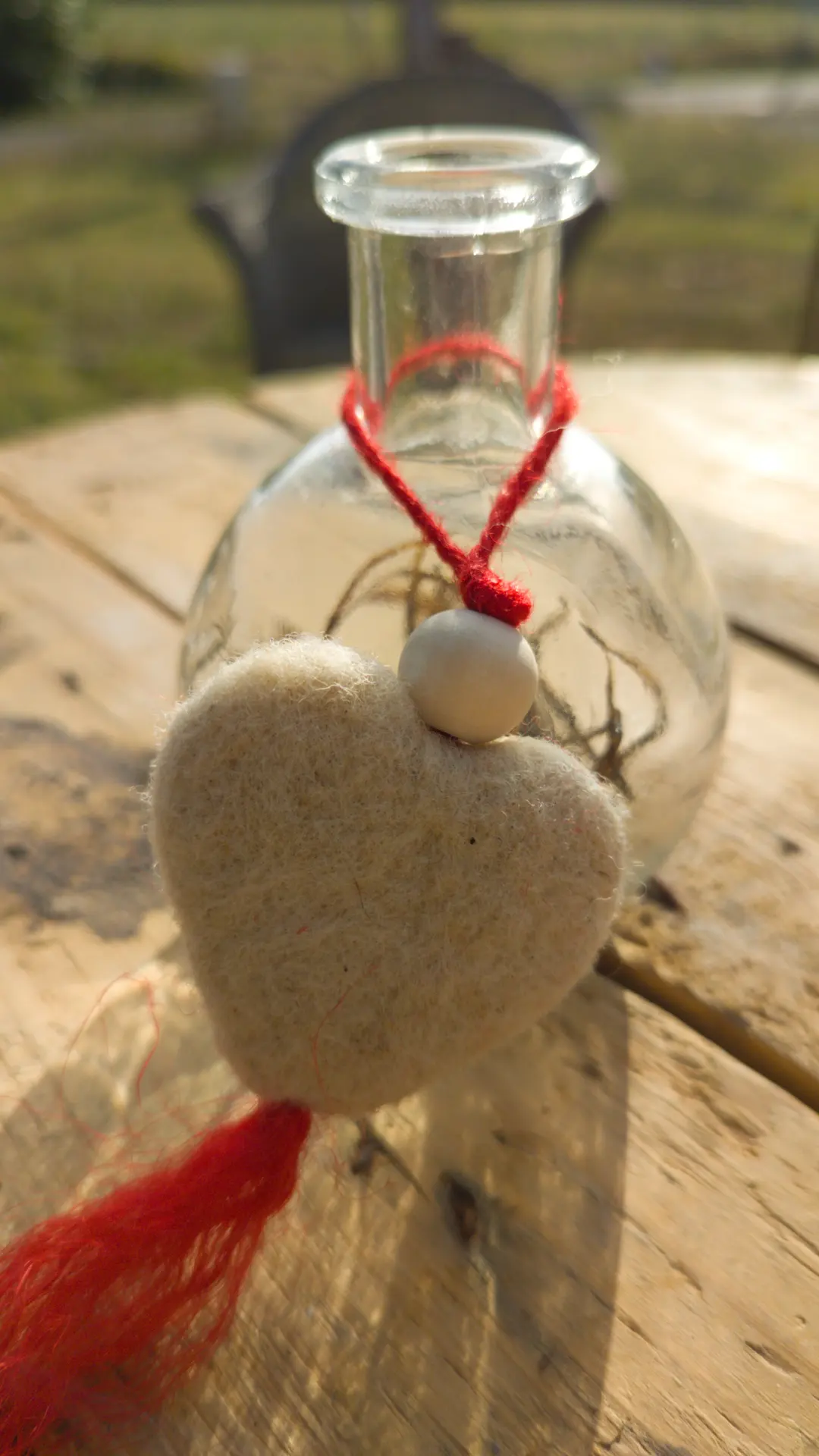 Coeur en laine feutrée, coloris naturel avec ficelle